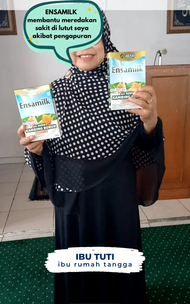 Dulu kalau naik tangga beliau merasakan sakit pada lutut alhamdulilah setelah mengkonsumsi Ensamilk sekarang sakit pada lutut beliau sudah berkurang jauh.
