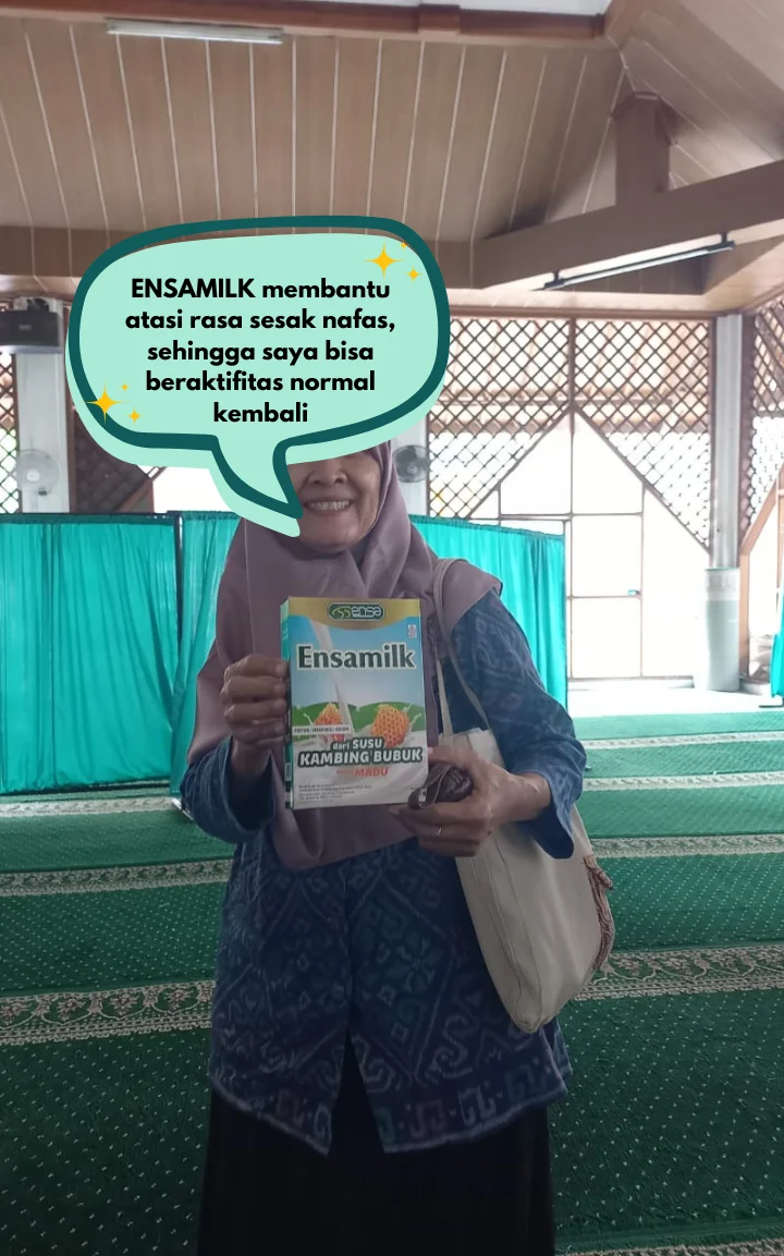 Ensamilk Alhamdulillah membantu mengatasi masalah pernafasan saya yang biasanya dada terasa sesak dan batuk yang tak sembuh-sembuh, sekarang pernafasan saya lebih terasa lega dan aktifitas saya sehari-hari tidak terganggu.